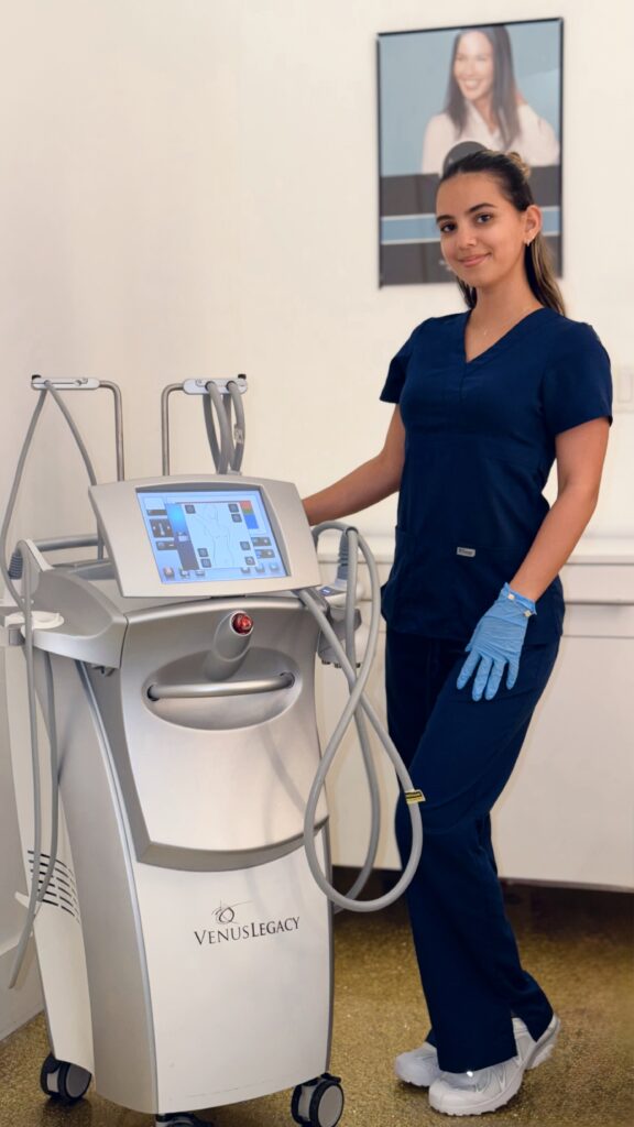 Many clients notice visible tightening after their first treatment. Results continue to improve over the following weeks as collagen production increases.